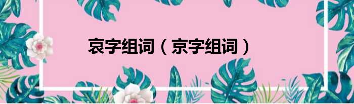 大家好,今天小六子来为大家解答以下的问题,关于哀字组词,京字组词这个很多人还不知道,现在让我们一起来看看吧!