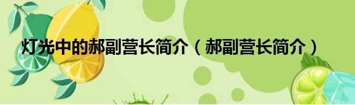 导读 大家好,今天小六子来为大家解答以下的问题,关于灯光中的郝副营长简介,郝副营长简介这个很多人还不知道,现在让我们一起来看看吧!1、郝世