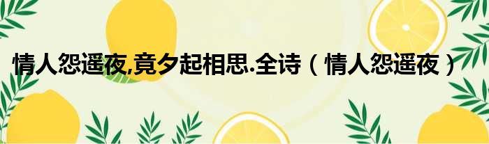 情人怨遥夜,竟夕起相思.全诗(情人怨遥夜)