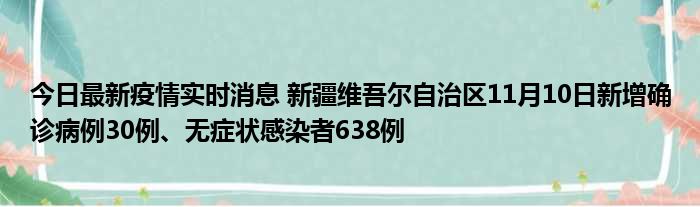 新疆卫健委通报,11月10日0时至24时,新疆维吾尔自治区新增确诊病例30例,新增无症状感染者638例,新增确诊病例治愈出院4例,新增无症状