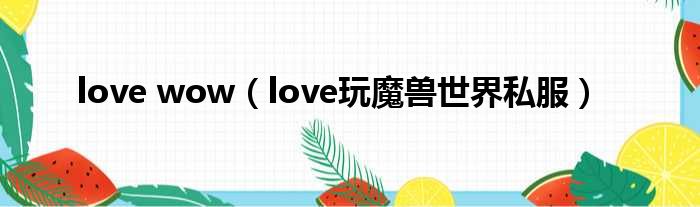 大家好,今天小六子来为大家解答以下的问题,关于love wow,love玩魔兽世界私服这个很多人还不知道,现在让我们一起来看看吧!