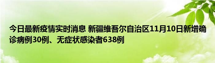 新疆卫健委通报,11月10日0时至24时,新疆维吾尔自治区新增确诊病例30例,新增无症状感染者638例,新增确诊病例治愈出院4例,新增无症状