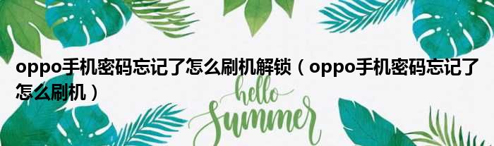 oppo手机密码忘记了怎么刷机解锁(oppo手机密码忘记了怎么刷机)