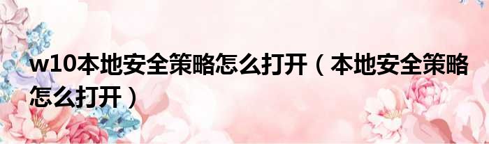 w10本地安全策略怎么打开(本地安全策略怎么打开)