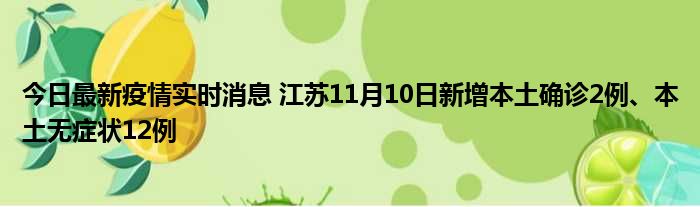 今日最新疫情实时消息 江苏11月10日新增本土确诊2例、本土无症状12例