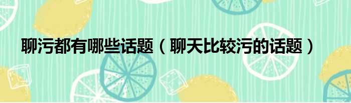 大家好,今天小六子来为大家解答以下的问题,关于聊污都有哪些话题,聊天比较污的话题这个很多人还不知道,现在让我们一起来看看吧!