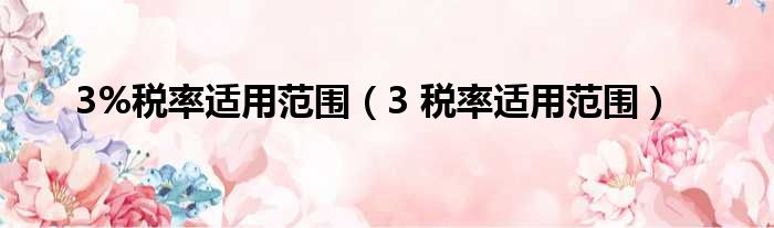 导读 大家好,今天小六子来为大家解答以下的问题,关于3%税率适用范围,3 税率适用范围这个很多人还不知道,现在让我们一起来看看吧!1、自2009