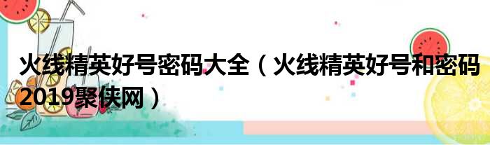 火线精英好号密码大全(火线精英好号和密码2019聚侠网)