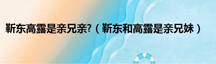 导读 大家好,今天小六子来为大家解答以下的问题,关于靳东高露是亲兄亲?,靳东和高露是亲兄妹这个很多人还不知道,现在让我们一起来看看吧!1、