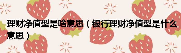 理财净值型是啥意思(银行理财净值型是什么意思)