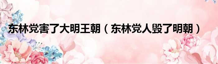 大家好,今天小六子来为大家解答以下的问题,关于东林党害了大明王朝,东林党人毁了明朝这个很多人还不知道,现在让我们一起来看看吧!