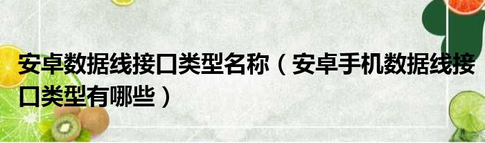 导读 大家好,今天小六子来为大家解答以下的问题,关于安卓数据线接口类型名称,安卓手机数据线接口类型有哪些这个很多人还不知道,现在让我们一