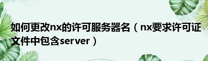 导读 大家好,今天小六子来为大家解答以下的问题,关于如何更改nx的许可服务器名,nx要求许可证文件中包含server这个很多人还不知道,现在让我们