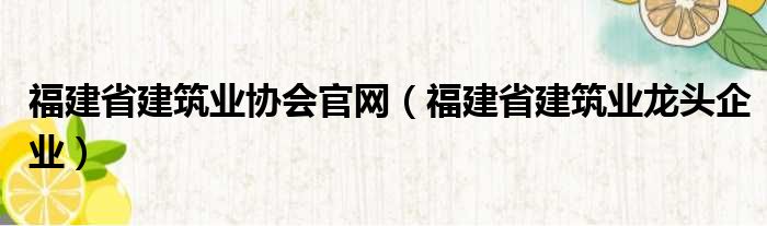 福建省建筑业协会官网(福建省建筑业龙头企业)