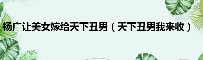 导读 大家好,今天小六子来为大家解答以下的问题,关于杨广让美女嫁给天下丑男,天下丑男我来收这个很多人还不知道,现在让我们一起来看看吧!1、