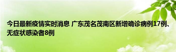 今日最新疫情实时消息 广东茂名茂南区新增确诊病例17例、无症状感染者8例
