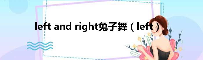 大家好,今天小六子来为大家解答以下的问题,关于left and right兔子舞,left这个很多人还不知道,现在让我们一起来看看吧!