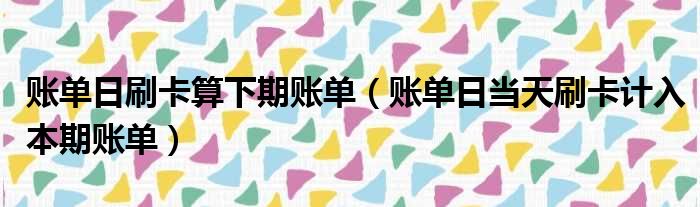 账单日刷卡算下期账单(账单日当天刷卡计入本期账单)