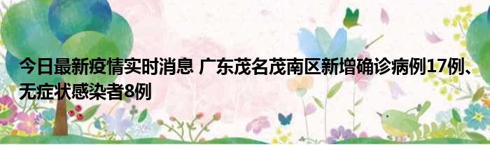 今日最新疫情实时消息 广东茂名茂南区新增确诊病例17例、无症状感染者8例