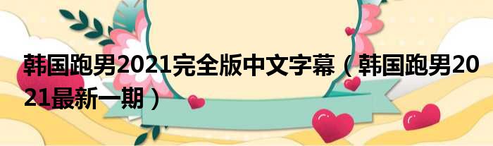 导读 大家好,今天小六子来为大家解答以下的问题,关于韩国跑男2021完全版中文字幕,韩国跑男2021最新一期这个很多人还不知道,现在让我们一起来