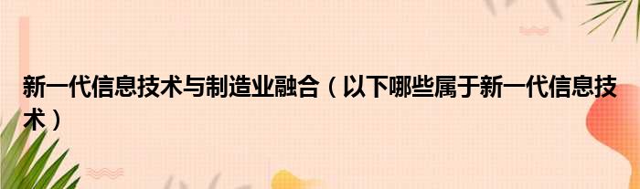 新一代信息技术与制造业融合(以下哪些属于新一代信息技术)