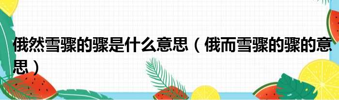导读 大家好,今天小六子来为大家解答以下的问题,关于俄然雪骤的骤是什么意思,俄而雪骤的骤的意思这个很多人还不知道,现在让我们一起来看看吧