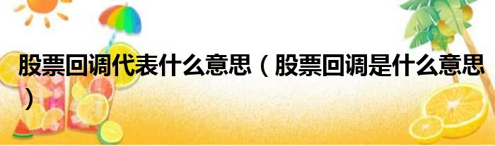 导读 大家好,今天小六子来为大家解答以下的问题,关于股票回调代表什么意思,股票回调是什么意思这个很多人还不知道,现在让我们一起来看看吧!1