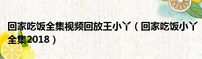 回家吃饭全集视频回放王小丫(回家吃饭小丫全集2018)