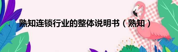 导读 大家好,今天小六子来为大家解答以下的问题,关于熟知连锁行业的整体说明书,熟知这个很多人还不知道,现在让我们一起来看看吧!1、烂如指掌