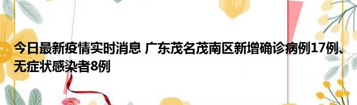 今日最新疫情实时消息 广东茂名茂南区新增确诊病例17例、无症状感染者8例