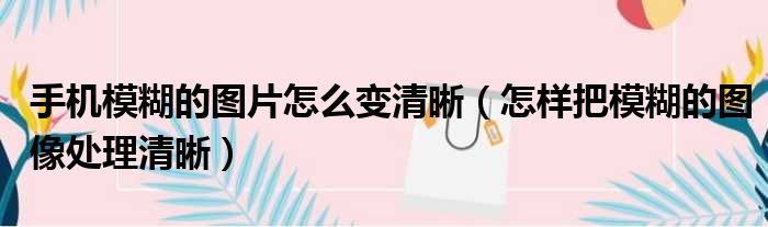 手机模糊的图片怎么变清晰(怎样把模糊的图像处理清晰)