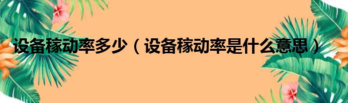 大家好,今天小六子来为大家解答以下的问题,关于设备稼动率多少,设备稼动率是什么意思这个很多人还不知道,现在让我们一起来看看吧!