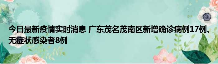 今日最新疫情实时消息 广东茂名茂南区新增确诊病例17例、无症状感染者8例