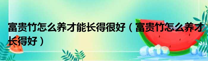 富贵竹怎么养才能长得很好(富贵竹怎么养才长得好)