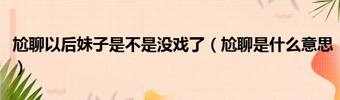 尬聊以后妹子是不是没戏了(尬聊是什么意思)