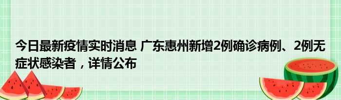 今日最新疫情实时消息 广东惠州新增2例确诊病例、2例无症状感染者,详情公布