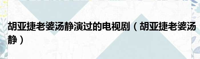 胡亚捷老婆汤静演过的电视剧(胡亚捷老婆汤静)
