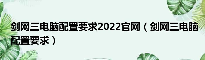 导读 大家好,今天小六子来为大家解答以下的问题,关于剑网三电脑配置要求2022官网,剑网三电脑配置要求这个很多人还不知道,现在让我们一起来看