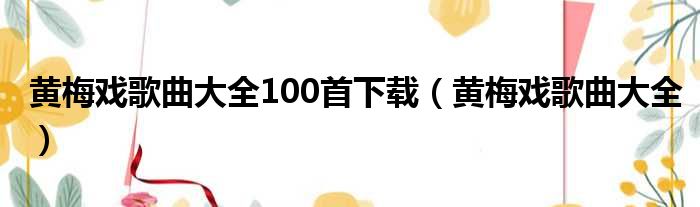 黄梅戏歌曲大全100首下载(黄梅戏歌曲大全)