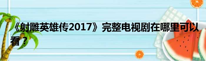 《射雕英雄传2017》完整电视剧在哪里可以看?