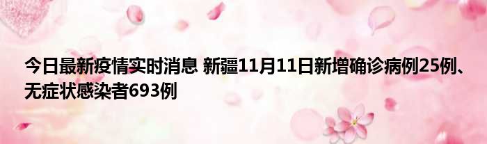 据新疆卫健委,11月11日0时至24时,新疆维吾尔自治区新增确诊病例25例,新增无症状感染者693例,新增确诊病例治愈出院7例,新增无症状感染者解除隔离医学观察120例