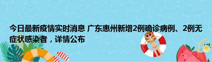 今日最新疫情实时消息 广东惠州新增2例确诊病例、2例无症状感染者,详情公布