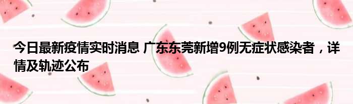 今日最新疫情实时消息 广东东莞新增9例无症状感染者,详情及轨迹公布