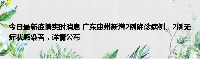今日最新疫情实时消息 广东惠州新增2例确诊病例、2例无症状感染者,详情公布
