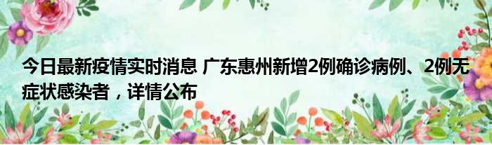 今日最新疫情实时消息 广东惠州新增2例确诊病例、2例无症状感染者,详情公布