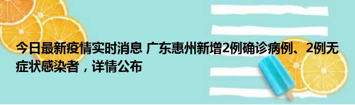 今日最新疫情实时消息 广东惠州新增2例确诊病例、2例无症状感染者,详情公布