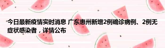 今日最新疫情实时消息 广东惠州新增2例确诊病例、2例无症状感染者,详情公布