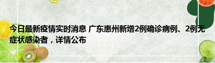 今日最新疫情实时消息 广东惠州新增2例确诊病例、2例无症状感染者,详情公布