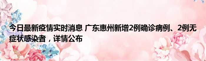 今日最新疫情实时消息 广东惠州新增2例确诊病例、2例无症状感染者,详情公布