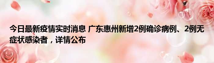 今日最新疫情实时消息 广东惠州新增2例确诊病例、2例无症状感染者,详情公布